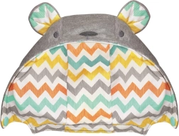 Nosidełko zawiera odczepiany kaptur z zabawnym motywem misia i uszami, które chronią dziecko, nie zasłaniając mu widoku.