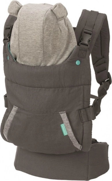 Nosidełko Infantino dla dziecka jest ergonomicznie zaprojektowane dla komfortu i bezpieczeństwa, z regulowanymi paskami na ramię i wyściełanym pasem biodrowym dla równomiernego rozłożenia wagi. Zawiera odczepiany kaptur z motywem misia dla zabawnego wyglądu.