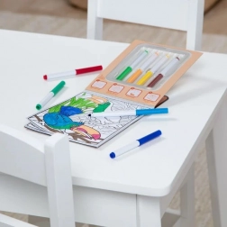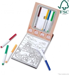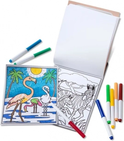 Dzięki wielokolorowym flamastrom w zestawie tworzenie jest szybkie, czyste i bez zbędnego bałaganu. Ilustracje z motywami dzikich zwierząt (np. zebra, flaming czy koala) inspirują dzieci do odkrywania przyrody i opowiadania własnych historii.