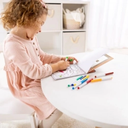 Kompaktowa kolorowanka z wbudowanymi uchwytami na wielokolorowe flamastry to idealne rozwiązanie do zabawy w podróży i w domu.