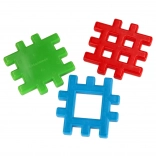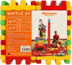 Ten zestaw zawiera 24 kolorowe elementy o wielkości około 10,5 × 10,5 cm i idealnie nadaje się do pierwszych zabaw konstrukcyjnych. Duże, łatwe do chwytania klocki łączą się bezpiecznie, trzymają kształt i można je wielokrotnie rozkładać oraz składać bez uszkodzeń. Dzieci mają mnóstwo zabawy, a jednocześnie wzmacniają koordynację ręka–oko oraz myślenie logiczne.