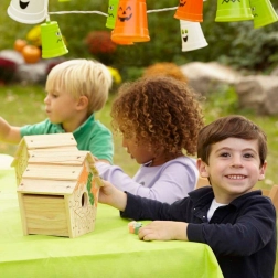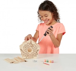 Zestaw pozwala dzieciom samodzielnie złożyć i ozdobić budkę dla ptaków według własnej fantazji.