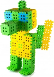 Elementy klocków wykonane są z elastycznego i bezpiecznego materiału, odpowiedniego dla małych dziecięcych rąk.
