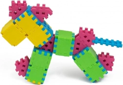Ten innowacyjny zestaw konstrukcyjny zawiera 140 elementów i stanowi prawdziwy raj dla małych konstruktorów. Oferuje 10 całkowicie nowych kształtów, które pozwalają tworzyć bardziej złożone i oryginalne budowle niż kiedykolwiek wcześniej. Miękkie i sprężyste klocki doskonale leżą w dziecięcych dłoniach, zapewniając wygodną i bezpieczną zabawę na wiele godzin. Dzięki specjalnej formule materiałowej elementy są odporne na odkształcenia i łatwe w czyszczeniu.
