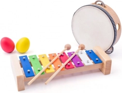 Ten zestaw muzyczny to świetny wybór na pierwsze kroki w świecie muzyki. Kolorowy ksylofon z metalowymi sztabkami, rezonujący tamburyn i wyraźnie brzmiący trójkąt motywują dzieci do odkrywania dźwięków, rytmów i własnej kreatywności. Zestaw wspiera rozwój koordynacji, koncentracji i percepcji słuchowej.