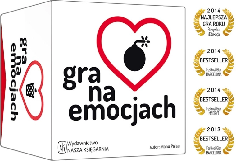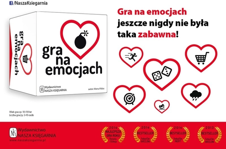 Gra zawiera ponad 100 kart z ikonami przedstawiającymi różne emocje. Każda z nich może być powiązana z wieloma rzeczami, co gwarantuje świetną zabawę!