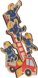 Drewniana układanka Strażacy od marki GOKI oferuje dzieciom możliwość wkładania elementów do drewnianej podstawy lub tworzenia przestrzennego modelu akcji strażackiej. Zabawka wspiera: