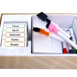 - Wybrana osoba siada po jednej stronie stołu i to ona będzie odgadywać. Pozostali gracze muszą jej podpowiadać.