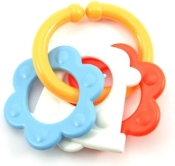 Nasz kolorowy plastikowy gryzak jest zaprojektowany dla małych rączek, które łatwo chwycą każdy z jego kształtów. Dzięki swojej różnorodności stymuluje zarówno zmysły, jak i dziąsła Twojego niemowlęcia.