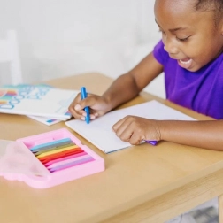 Wszystkie kolory masz pod ręką, kredki się nie toczą, a dzieci mogą spokojnie tworzyć przy stole lub w kąciku zabaw.