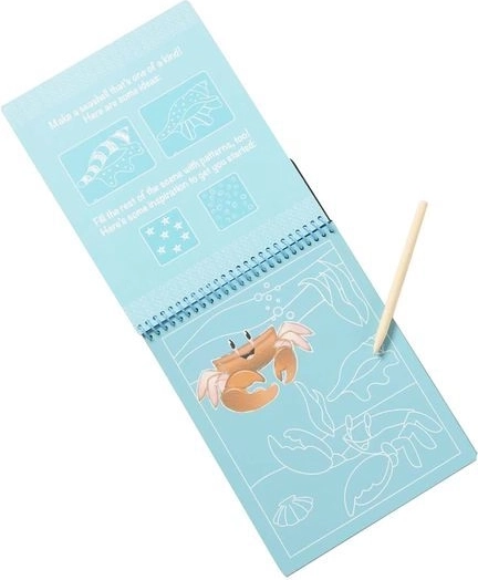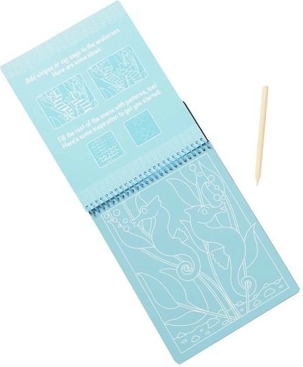 Ten zdrapywany zeszyt z motywami życia morskiego zapewnia dzieciom nieskończone godziny twórczej zabawy. Wystarczy delikatnie zeskrobywać wierzchnią warstwę specjalnym drewnianym rysikiem, a kolorowe sceny z rybkami, żółwiami czy konikami morskimi będą stopniowo się ujawniać. Aktywność jest intuicyjna, motywująca i nie wymaga farb ani kleju.