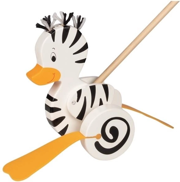 Ta starannie wykonana kaczuszka na kiju to idealny towarzysz pierwszych kroków. Lekka konstrukcja i przyjemne wymiary ułatwiają dzieciom prowadzenie, a figlarny wygląd Zebro pobudza wyobraźnię i radość z ruchu.