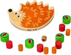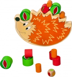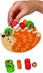 Pomaga dzieciom rozwijać motorykę małą oraz koordynację ręka-oko podczas balansowania różnokolorowymi częściami na zabawkowego jeża.