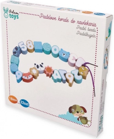 Zestaw zawiera 22 urocze koraliki w pastelowych kolorach oraz mocny sznurek o długości 130 cm.