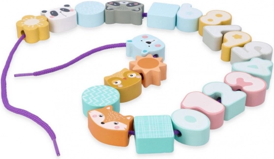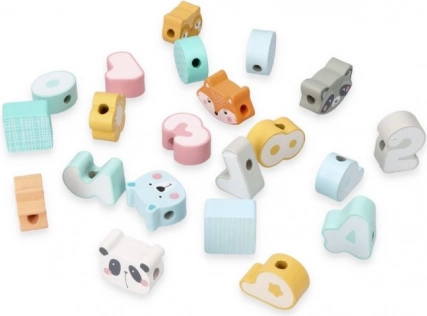 Nasze pastelowe nawlekane koraliki są idealne dla małych projektantów już od 18 miesięcy. Każdy koralik to mała przygoda – czy to urocza buźka zwierzątka, czy geometryczny kształt w pastelowym odcieniu. Razem tworzą wyjątkową kolekcję, która inspiruje do kreatywnego tworzenia własnych wzorów i kompozycji. Ta zabawka to nie tylko rozrywka, ale prawdziwe narzędzie kreatywności!
