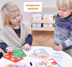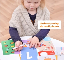 Zestaw zawiera kolorowe ilustracje pełne humoru, które zachęcają dzieci do kreatywnych aktywności. Karty umożliwiają wielokrotne rysowanie i ścieranie, co stanowi świetny edukacyjny prezent dla dzieci w wieku przedszkolnym. Idealny także w podróży z dzieckiem.