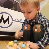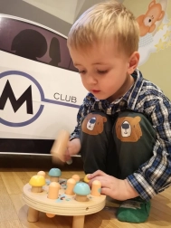 Kolorowe kołeczki i młoteczek są zaprojektowane tak, aby przyciągnąć uwagę dziecka i umożliwić łatwą obsługę.