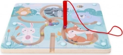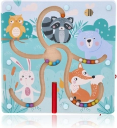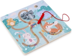 Drewniany magnetyczny labirynt z motywem leśnych zwierzątek zachwyci małych odkrywców już od 2. roku życia. Za pomocą magnetycznej pałeczki dzieci przesuwają kolorowe kuleczki po ścieżkach, trenując małą motorykę, koordynację oko–ręka oraz logiczne myślenie. Kuleczki chroni przezroczysta osłona, pałeczka jest na sznureczku, a kompaktowe wymiary 22,5 × 22,5 cm czynią z niej idealną zabawkę podróżną. Certyfikacja CE.