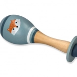 Uroczy niebieski drewniany marakas z motywem liska jest idealny jako pierwszy instrument muzyczny dla niemowląt od 5 miesięcy. Wspiera rozwój słuchu, motoryki małej i poczucia rytmu, ma ergonomiczny kształt, gładką powierzchnię i bezpieczne materiały z certyfikatem CE.