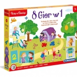 Obszerna kolekcja 8 gier edukacyjnych przeznaczonych do nauki podstawowych pojęć przedszkolnych.