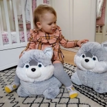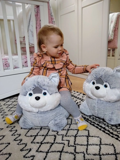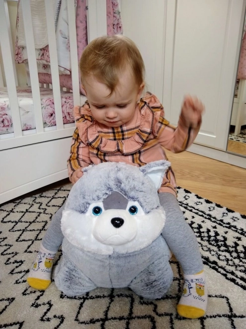 Ta urocza pluszowa poduszka husky to idealny towarzysz dla dzieci w każdym wieku. Dzięki miękkiemu i przyjemnemu w dotyku materiałowi świetnie sprawdzi się do przytulania lub wygodnego siedzenia. Uniwersalny design i czarujące niebieskie oczy od razu przyciągają uwagę.