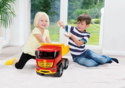 Interaktywna wywrotka z ruchomą skrzynią ładunkową dla najmłodszych budowniczych.