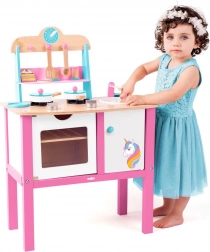 Odkryj magiczną kuchnię WOODY z motywem jednorożca, która zamieni dziecięcy pokój w kreatywne kulinarne studio. Dzięki starannemu wykonaniu z wysokiej jakości sklejki i drewna jest stabilna, wytrzymała i atrakcyjna wizualnie – doskonała do codziennej zabawy w gotowanie.