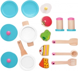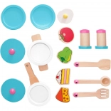 Garnek, patelnia, pokrywka, chochla, solniczka, pieprzniczka i inne drobiazgi nadają zabawie w gotowanie realizmu i różnorodności. Wszystko dopasowane do dziecięcych rączek.