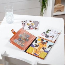 Dzięki praktycznemu formatowi zestaw łatwo mieści się w plecaku i zajmuje dzieci w domu, w odwiedzinach oraz w podróży. Solidne podłoże i wysokiej jakości materiał samoprzylepny zapewniają długą żywotność i przyjemne użytkowanie.