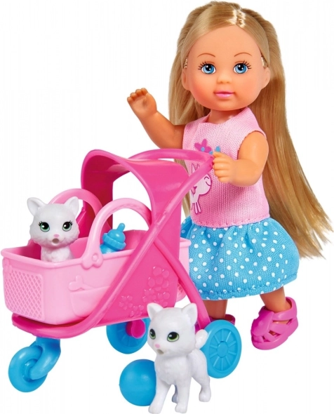 Laleczka Evi wprowadza dzieci w fantastyczny świat wyobraźni z dwiema uroczymi kotkami i wózkiem, który ma wyjmowany koszyk oraz różne akcesoria pobudzające kreatywną zabawę.