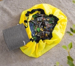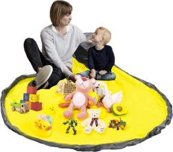 Rozłóż dużą matę (Ø 135 cm), pozwól dzieciom się bawić, a po skończonej zabawie pociągnij za sznurek ze stoperem – zabawki w mgnieniu oka trafią do kosza.