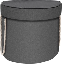 Dzięki wygodnym uchwytom linowym kosz łatwo przeniesiesz z pokoju do pokoju, na taras czy piknik. Neutralny szary kosz i żółto-czarna mata pasują do każdego wnętrza.