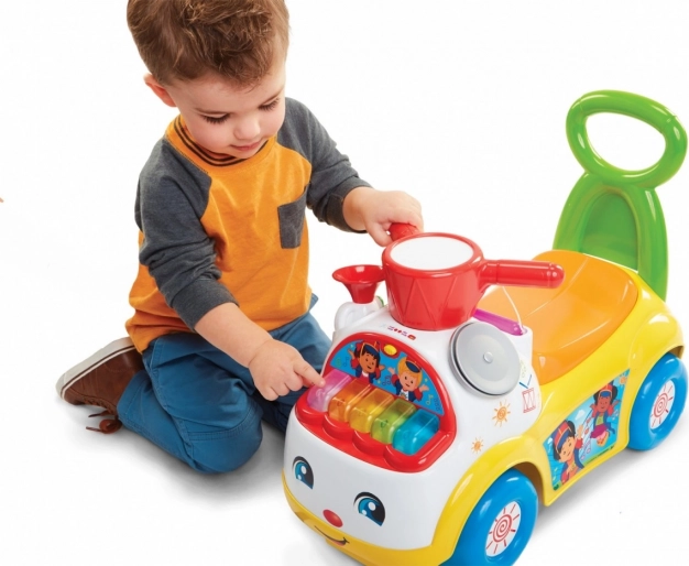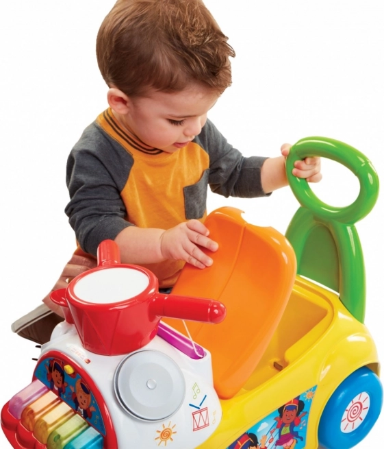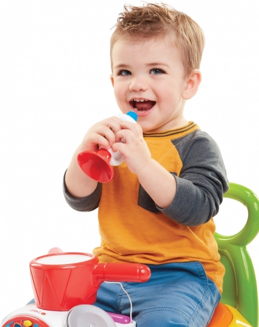 Jeździk Fisher-Price Music Parade to świetny towarzysz pierwszych kroków i samodzielnej jazdy. Dziecko może odpychać się nóżkami, siedząc, lub skorzystać z tylnej rączki jako stabilnego oparcia podczas chodzenia. Wesołe kolory i interaktywne elementy wspierają naturalną ciekawość oraz zabawę.