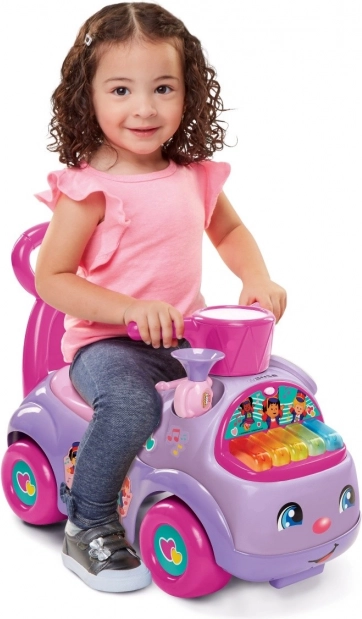 Fioletowy jeździk FISHER-PRICE Muzyczna parada to wszechstronny towarzysz pierwszych przejażdżek i pierwszych kroków. Dzięki tylnej rączce posłuży jako stabilne podparcie przy chodzeniu, a po zajęciu miejsca dziecko odpycha się nóżkami, co naturalnie wzmacnia mięśnie i trenuje równowagę.