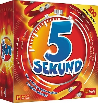 Potrafisz w 5 sekund wymienić trzy rodzaje owoców albo trzy europejskie kraje? W 5 sekund będziesz próbować raz za razem – a czas nieubłaganie płynie. Gra idealna na imprezy, rodzinne spotkania i posiedzenia ze znajomymi, gdzie rozkręci atmosferę i rozbawi wszystkich przy stole.