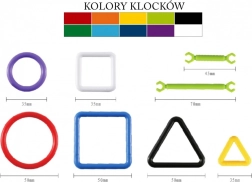 • Różne kształty – patyczki, kółka, kwadraty i trójkąty do budowy rozmaitych obiektów.