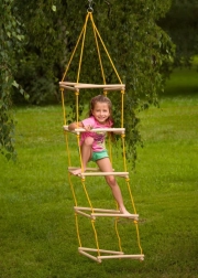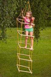 Wykonana z solidnych drewnianych szczebli i wytrzymałych linek, które zapewniają bezpieczeństwo przy każdym użyciu.