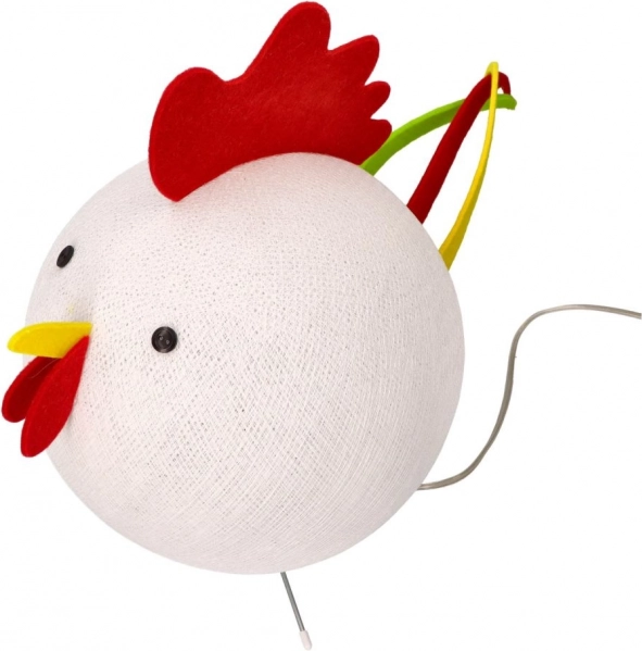 Sferyczne ciało, kolorowy grzebień i dzióbek tworzą wesoły wygląd, który doda wnętrzu wyjątkowego uroku oraz przyjemnego, nastrojowego światła.