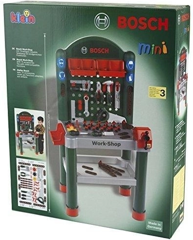 Odkryj dziecięcy stół warsztatowy BOSCH z 79 elementami dla małych majsterkowiczów. Realistyczne plastikowe narzędzia od THEO KLEIN wspierają kreatywność, motorykę małą i zabawę w odgrywanie ról. W zestawie są piłka, młotek, klucze, śruby oraz stabilny stojak z perforowaną ścianką dla porządku podczas zabawy.