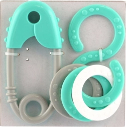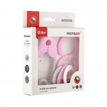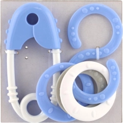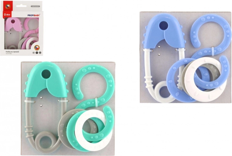 Uroczy zestaw grzechotek dla najmłodszych w pastelowych kolorach łączy kształt agrafki i ósemki. Wspiera rozwój zmysłów, trenuje odruch chwytania i jest wykonany bez ostrych krawędzi oraz małych, odłączanych elementów.