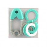 Ten plastikowy zestaw grzechotek został zaprojektowany dla najmłodszych dzieci i pomaga rozwijać słuch, wzrok oraz dotyk. Dzięki delikatnemu grzechotaniu i przyjemnym pastelowym barwom naturalnie motywuje dzieci do odkrywania i zabawy. Kształt agrafki (długość 12 cm) oraz ósemki dobrze leży w małych rączkach i wspiera bezpieczny trening chwytania.