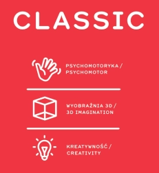 Klasyczny kształt klocków wykonany jest z bezpiecznego, gumowego materiału. Klasyczne klocki są solidne i proste, co pozwala budować zwarte i trwałe konstrukcje. Pięć rozmiarów klocków zapewnia szeroki wachlarz możliwości budowania i rozwijania dziecięcej wyobraźni.