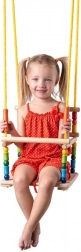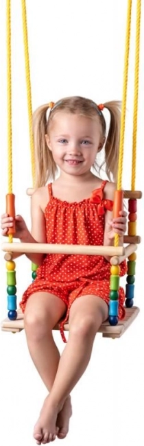 Ta drewniana huśtawka daje dzieciom radość bujania, a rodzicom spokój dzięki wysokiej jakości wykonania i certyfikatowi CE. Siedzisko o wymiarach 30 × 30 cm jest stabilne i wygodne, a regulowana długość lin umożliwia łatwe dopasowanie do różnych przestrzeni.