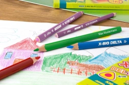 Duże trójkątne kredki X-Big Delta zapewniają doskonałą jakość rysunku dla Twoich dzieci.