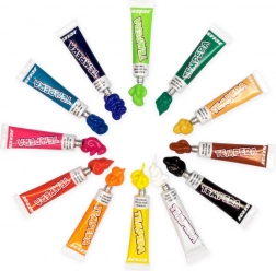 Zestaw zawiera 12 podstawowych kolorów rozszerzonych o kolor srebrny i złoty dla jeszcze bardziej kreatywnych wyników.