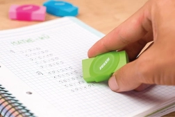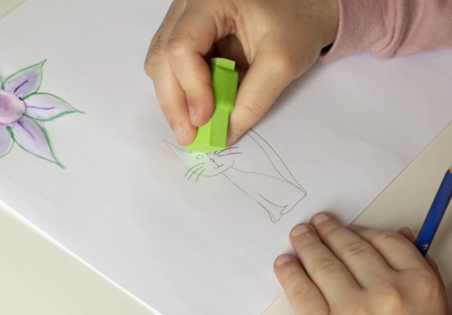 Profilowany uchwyt zwiększa komfort i precyzję. Gumka nie ślizga się w dłoni, a wymazywanie jest szybkie i pewne nawet u dzieci.