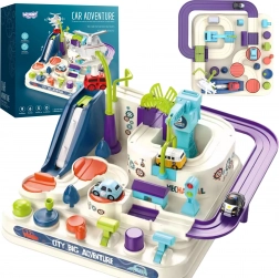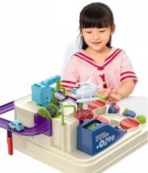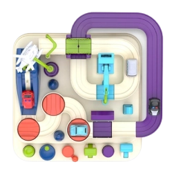 Przyciski sterujące i pokrętła dają dzieciom kontrolę nad podnośnikami, ruchomymi platformami oraz mostem. Zabawa rozwija planowanie i podejmowanie decyzji – mali kierowcy muszą przemyśleć, jak najlepiej przejechać trasę i pokonać wyzwania.
