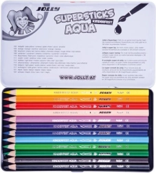 Zestaw 12 akwarelowych kredek w praktycznym metalowym pudełku dla małych i dużych twórców. Kredki JOLLY Supersticks Aqua łatwo rozmywają się wodą, tworząc delikatne przejścia i efekty, mają wytrzymały rdzeń i długą żywotność. Idealne w podróży i do domowego tworzenia. Efekt akwareli, 12 nasyconych kolorów, solidne metalowe pudełko, od 3 lat.