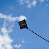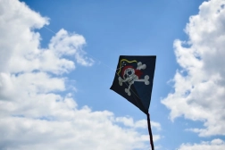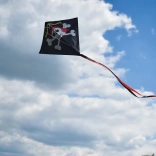Czarny motyw z czaszką i skrzyżowanymi kośćmi jest doskonale widoczny na tle błękitnego nieba i doda Twojemu lataniu odrobiny przygody.