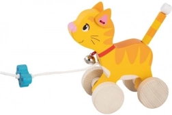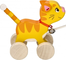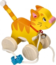 Ta urocza drewniana zabawka do ciągnięcia kotek jest idealną zabawką do wspierania rozwoju motorycznego i równowagi małych dzieci. Wyposażona w dzwoneczek, który delikatnie brzęczy podczas ruchu, co dodaje zabawce uroku.